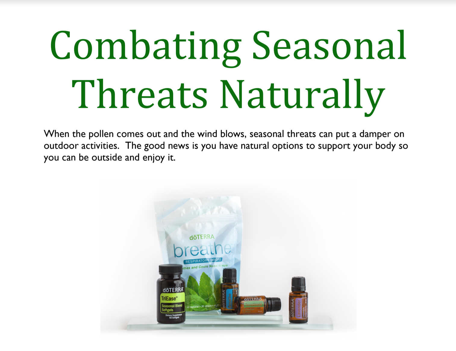 Seasonal threats are the bodies reaction to the pollen that has entered the system. Boosting our immune system and keeping it strong is key. Here are my favorite products to boost the immune system: